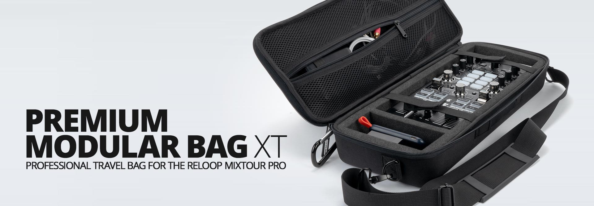 Pensado para la movilidad, el Premium Modular Bag XT incluye una correa de hombro ajustable y desmontable, además de un asa de agarre y un mosquetón para facilitar la sujeción a otros equipajes. Sus patas de goma antideslizantes brindan gran estabilidad. Es la opción preferida por quienes buscan un bolso para controlador robusto pero ligero (pesa solo 640 gramos) y es compatible con una amplia variedad de controladores compactos modulares, maximizando la versatilidad de su rack de estudio portátil.