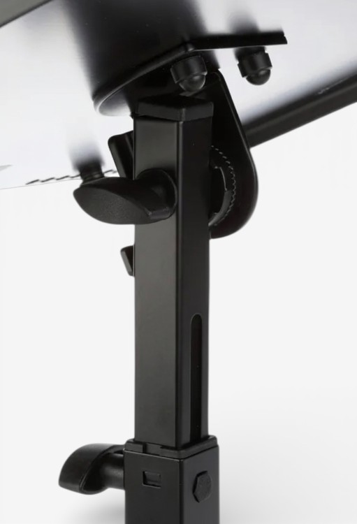 El soporte para notebook K&M 18815 es la solución profesional para músicos y técnicos que necesitan una visualización cómoda, estable y totalmente ajustable de su computador portátil sobre el escenario o en el estudio.