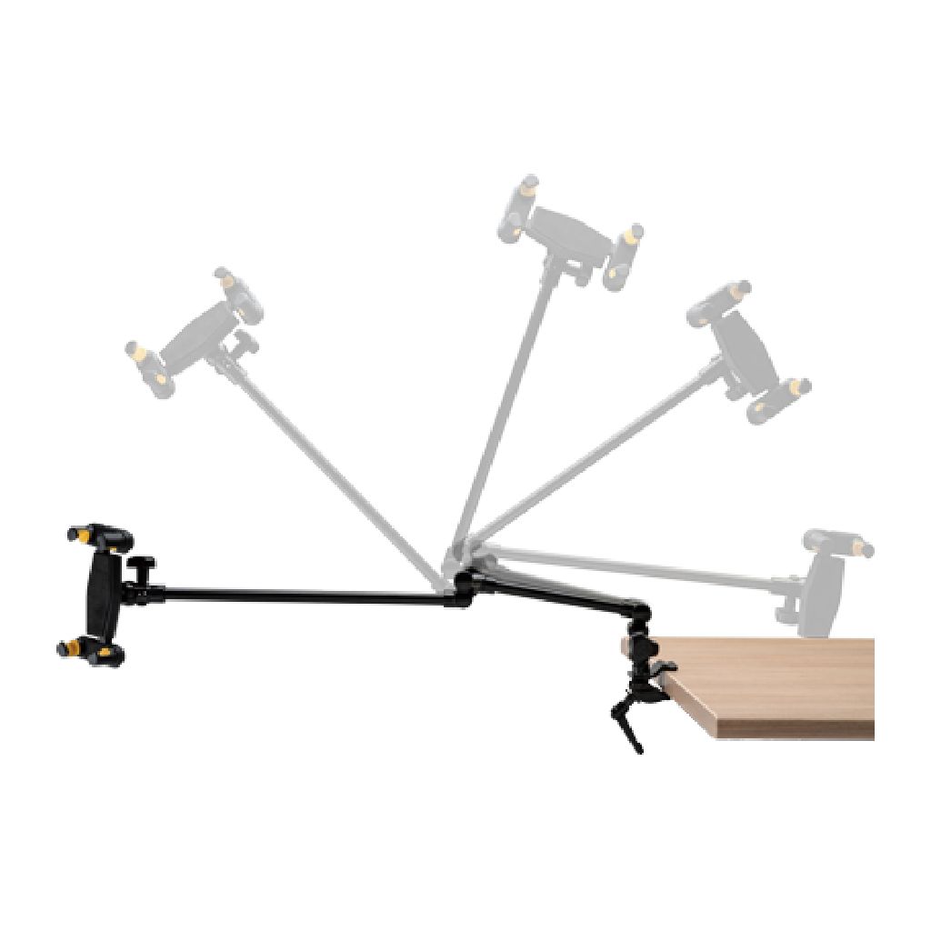 El Hercules DG327B es un soporte universal para tablet diseñado para ofrecer una solución estable y práctica para músicos, presentadores y creadores de contenido que utilizan dispositivos móviles como parte de su flujo de trabajo. Su diseño flexible permite posicionar la tablet de forma cómoda para leer partituras, controlar aplicaciones musicales o visualizar contenido durante presentaciones en vivo o sesiones de estudio.
