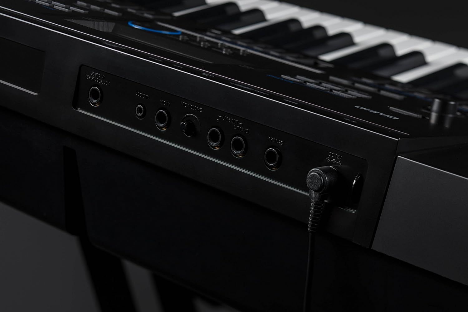 Cuenta con 76 teclas estilo piano con sensibilidad táctil (dos niveles), lo que permite expresividad al tocar y control dinámico del volumen según la fuerza con que presiones cada tecla.