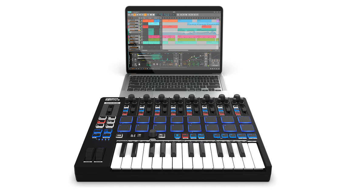 La sección de pads de batería cuenta con dieciséis pads sensibles a la velocidad, que incluyen aftertouch y luz de fondo RGB. Esto proporciona una flexibilidad increíble para la creación de ritmos y beats, la activación de muestras y el lanzamiento de clips en su sesión. El aftertouch es clave para agregar esa expresividad dinámica a sus baterías grabadas, elevando la calidad de su producción y ofreciendo el control preciso que exige el diseño de sonido profesional.