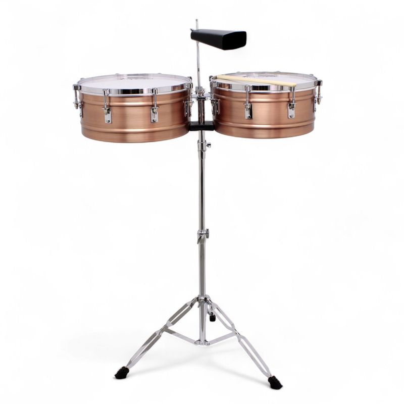 La Timbaleta Tropicana de 14" y 15" combina solidez, precisión y una respuesta sonora brillante, ideal para el intérprete que busca versatilidad tanto en ritmos latinos tradicionales como en fusiones modernas. Su cuerpo está fabricado con lámina de acero cold-rolled, que proporciona una proyección potente y un timbre metálico definido, manteniendo un equilibrio natural entre ataque y resonancia.