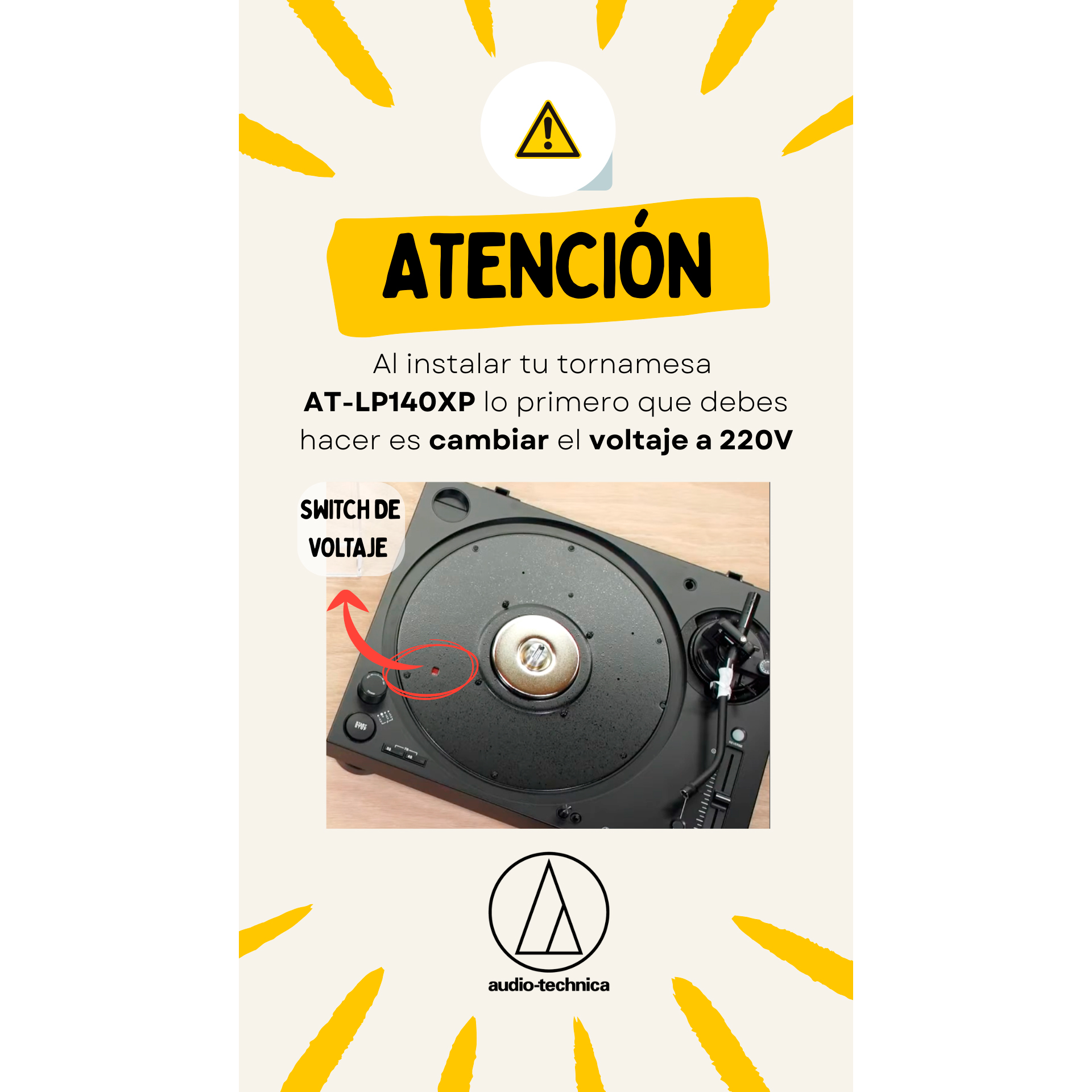 El paquete incluye la cápsula para DJ AT-XP3 de alto rendimiento, diseñada para ofrecer una salida robusta de 5,5 mV. Esto asegura un nivel de señal potente y claro directamente a su mixer o amplificador de sonido, lo que es crucial en entornos ruidosos o al usar equipos de música de alta demanda. La sólida construcción de la base amortiguada reduce la retroalimentación de frecuencias bajas, un dolor de cabeza común, permitiéndole subir el volumen y sentir la potencia de sonido sin compromisos. Es una solución completa de audio profesional que funciona perfectamente para pinchar o simplemente disfrutar de la calidez del formato análogo.