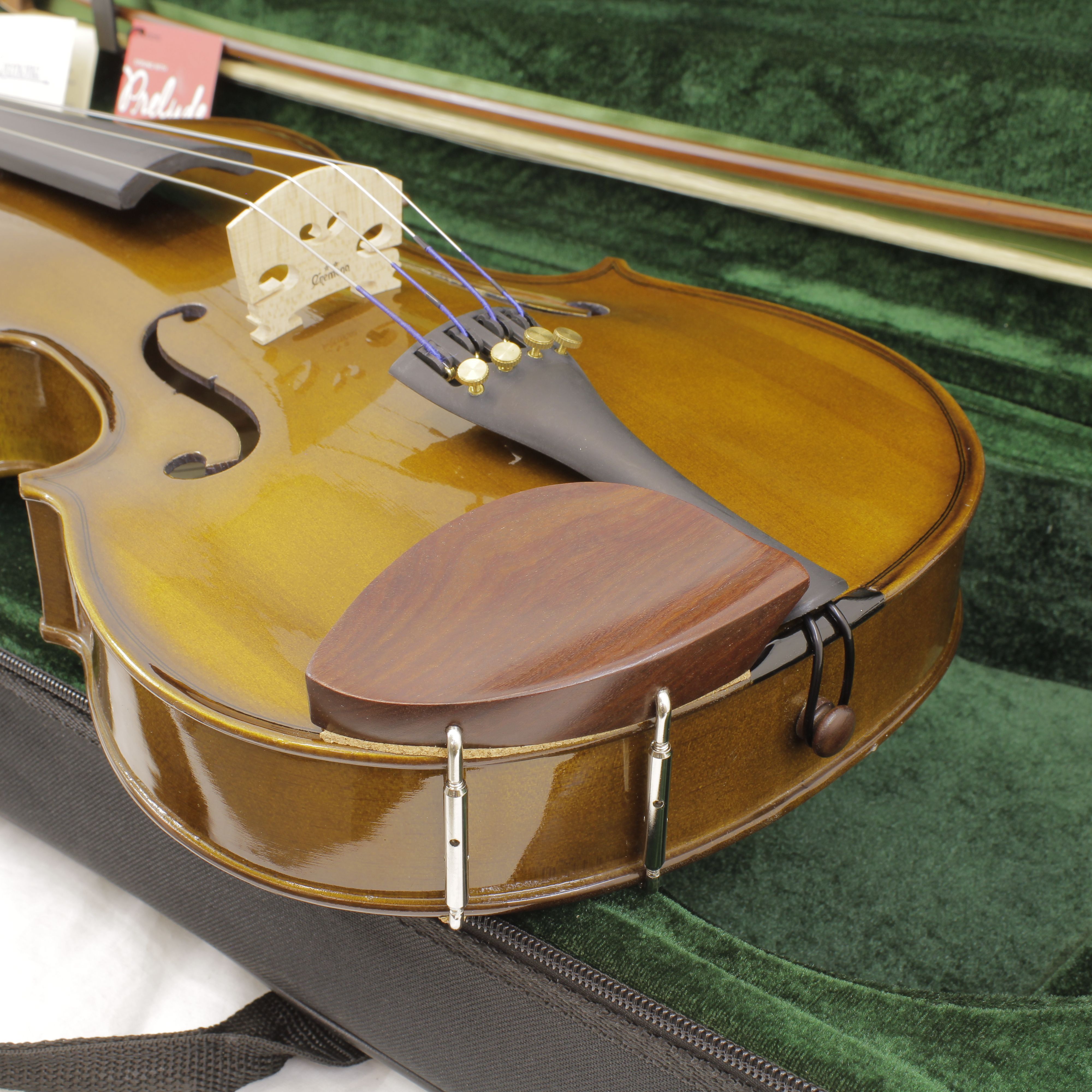 Este modelo se presenta como un outfit completo, incluyendo estuche rígido tipo oblong Travelite con soportes para arco, un arco J. LaSalle de brazilwood con crin natural y cuerdas D’Addario Prelude, permitiendo comenzar a tocar de inmediato sin necesidad de accesorios adicionales.