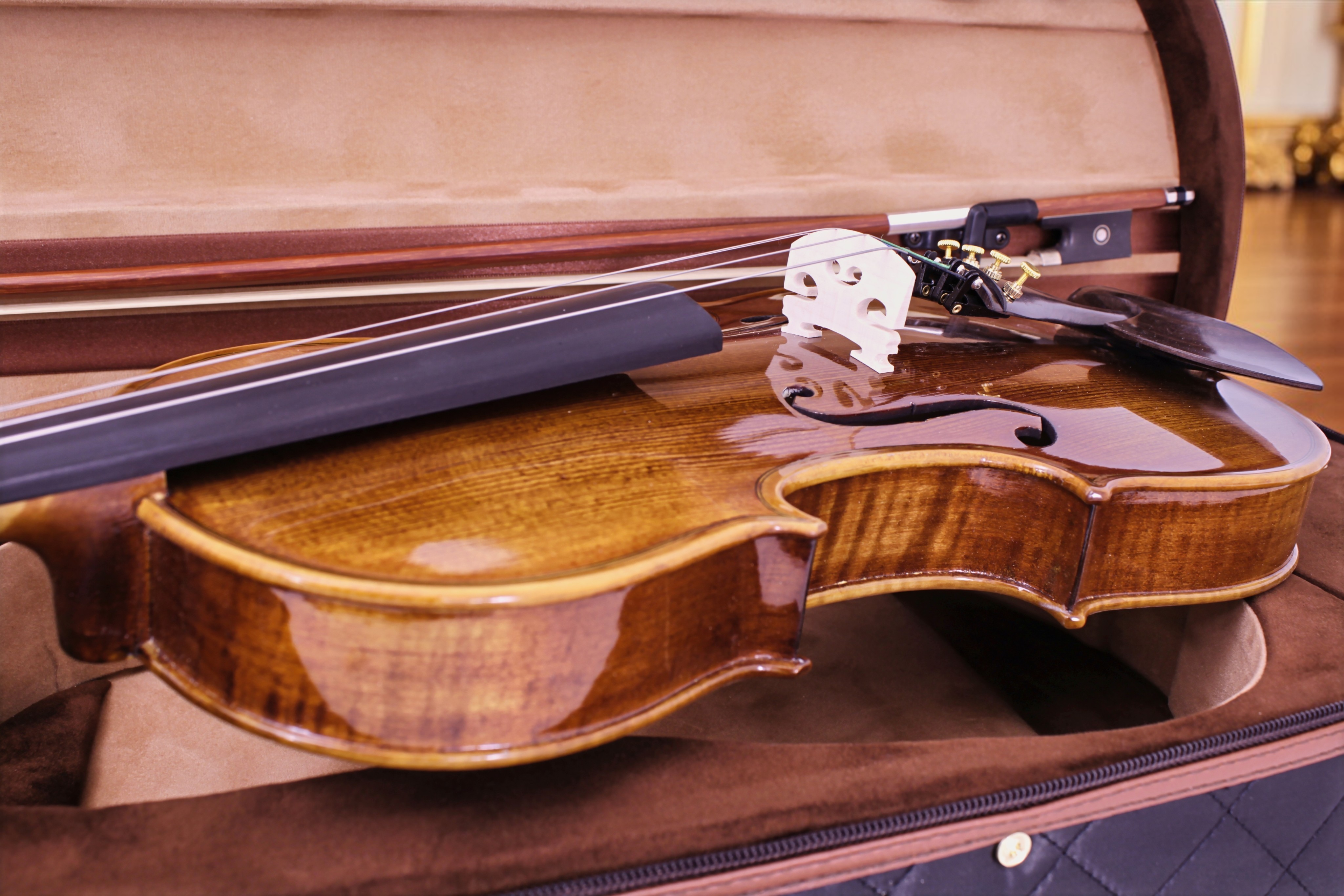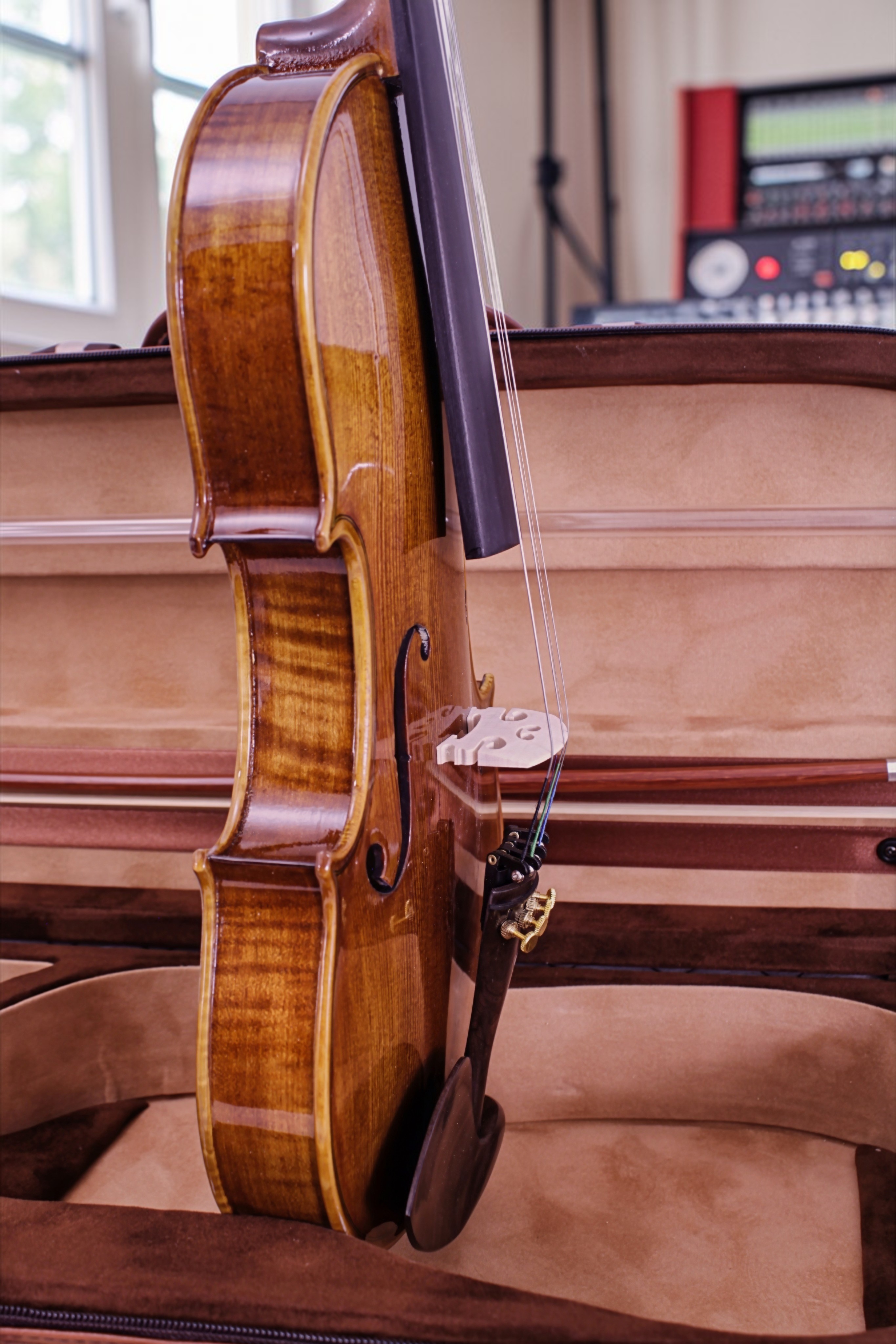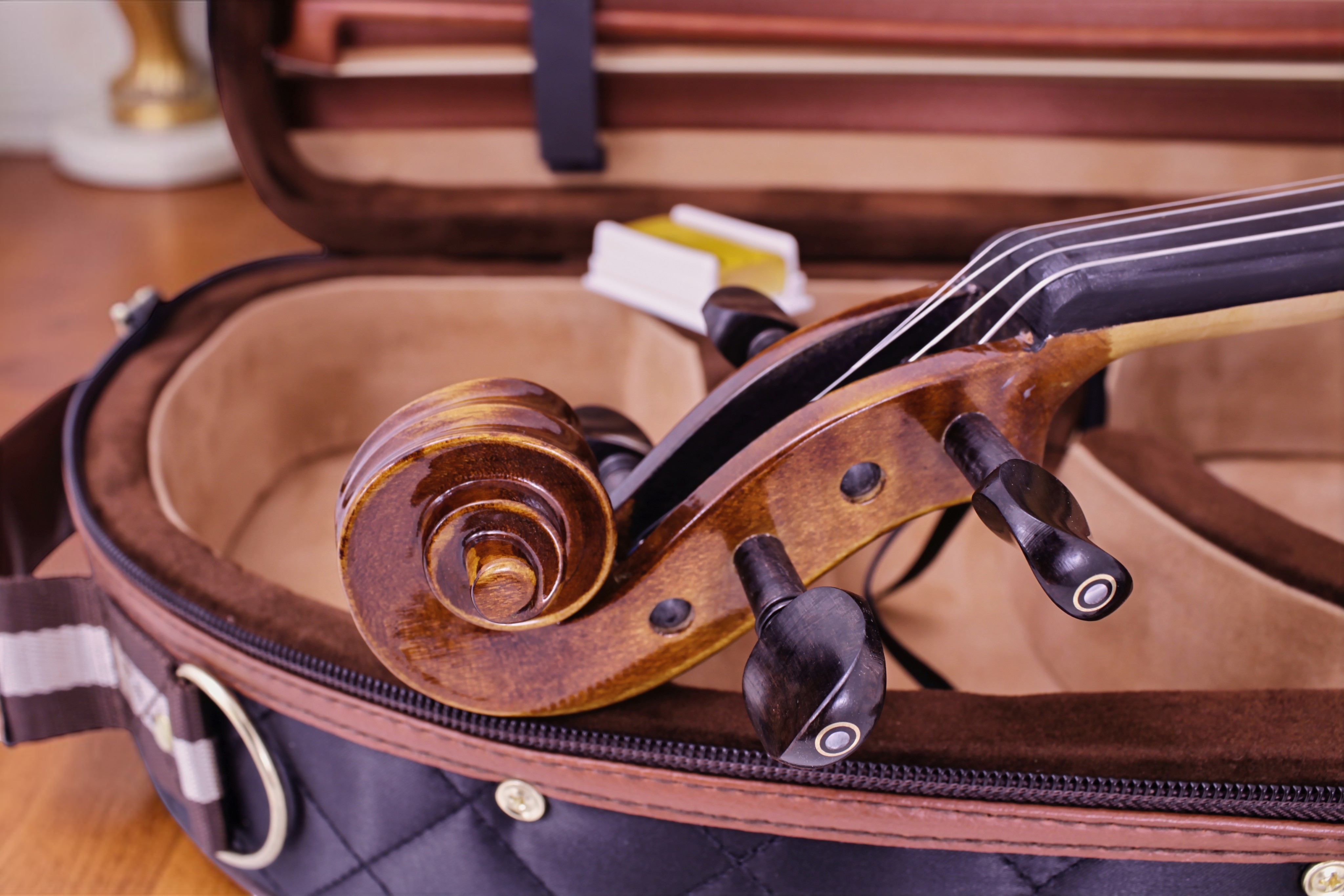 El violín incluye un estuche de fino acabado, diseñado para brindar protección y comodidad en el transporte.